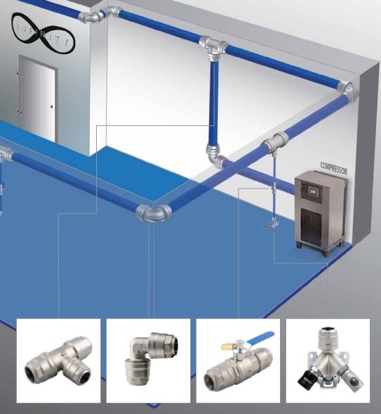 Lightweight, modular aluminum piping for fast, efficient compressed air installations.